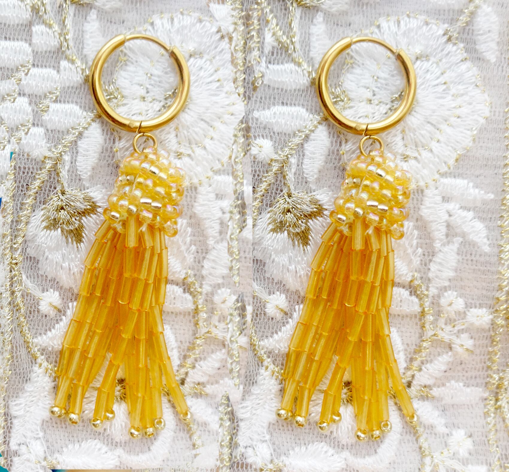ご不明点やご質問がございましたら、ショップのお問い合わせからお気軽にお尋ねください。この「銀杏並木を纏うビーズタッセルフープピアス」で、あなたのコーディネートに特別なアクセントを加えてみましょう!