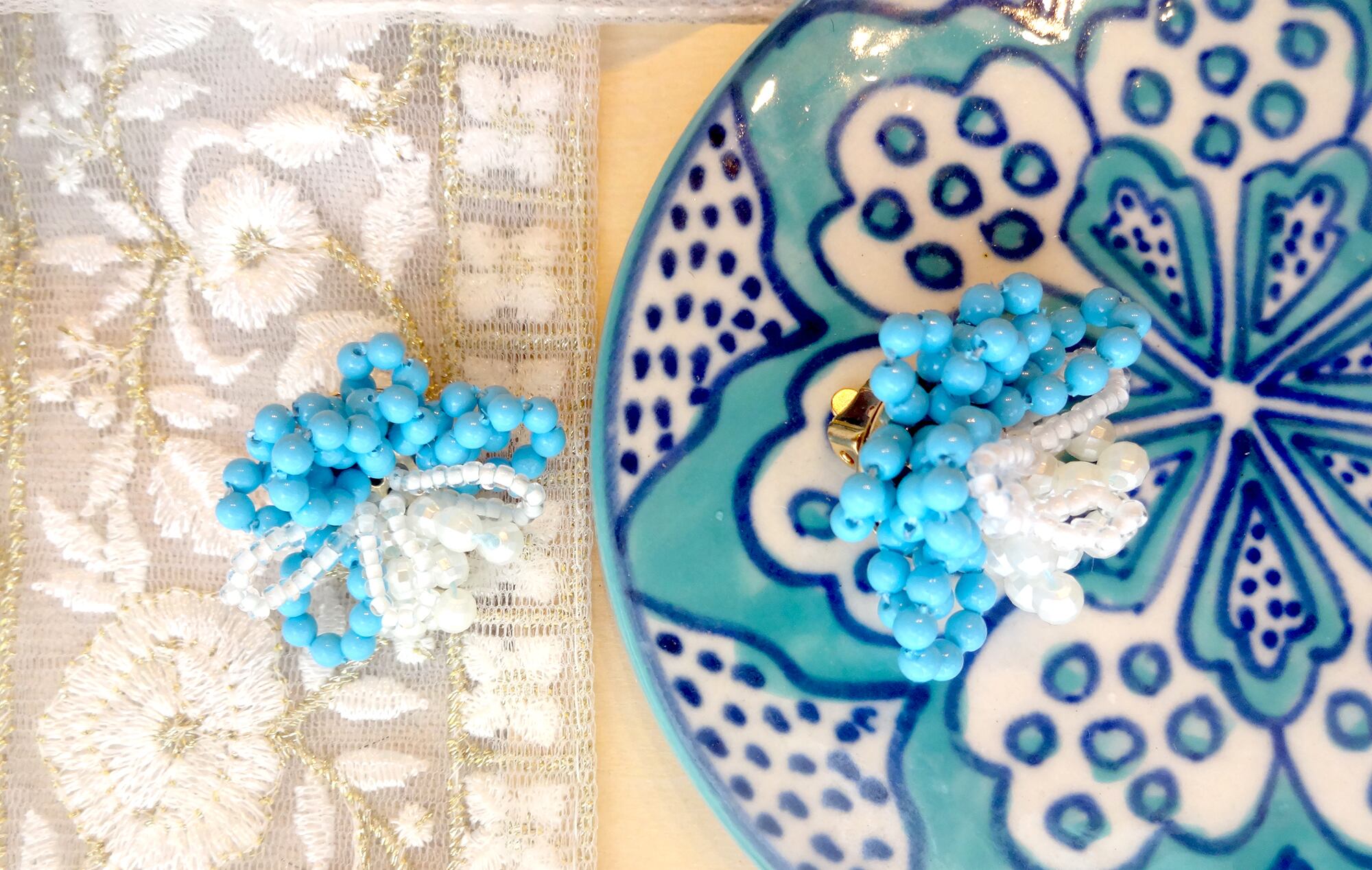 - 素材: ターコイズビーズ×パールビーズ×ブラスGD